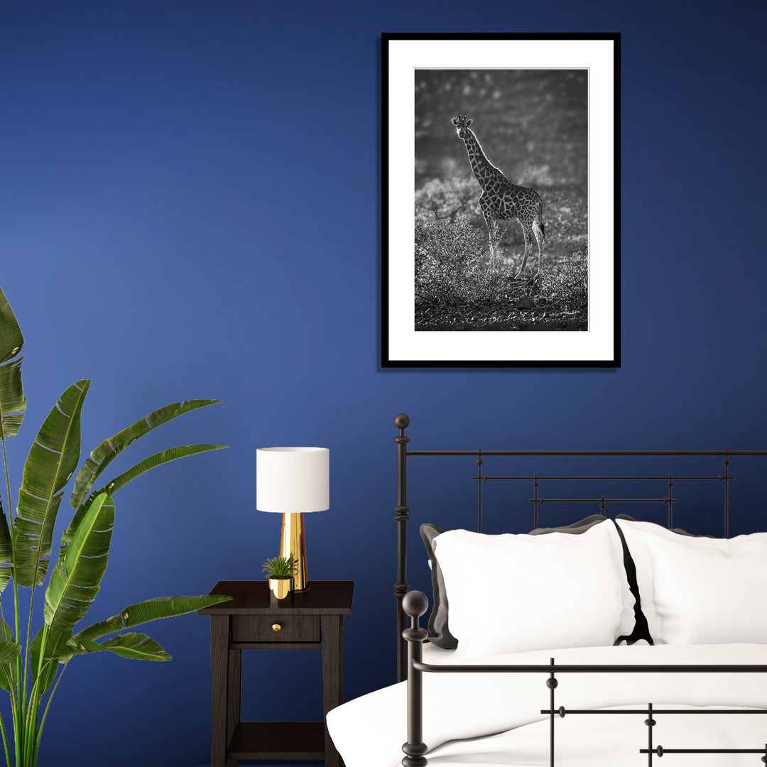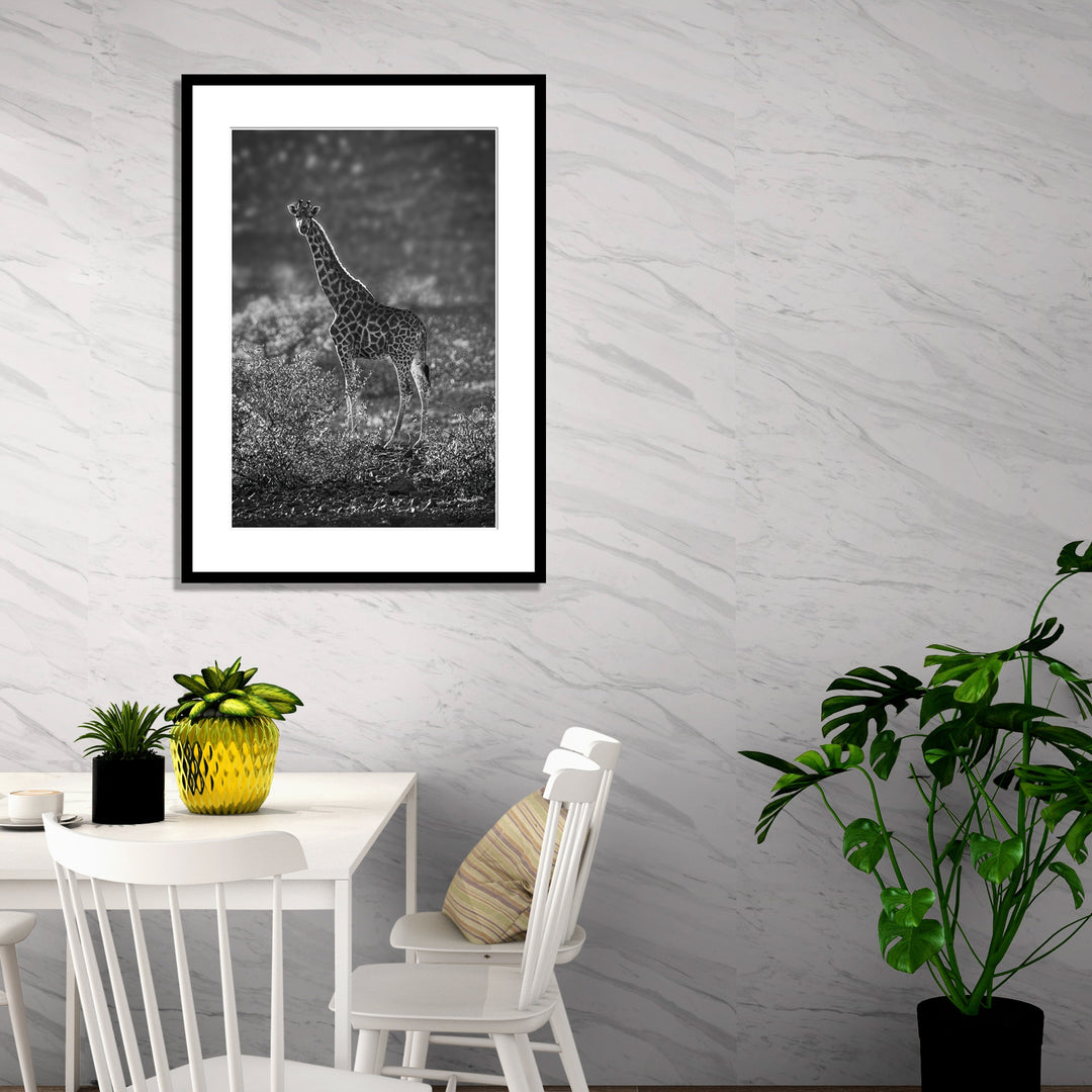 This limited-edition print from Etendeka, Namibia, will be a conversational piece in any room. A Beautiful Day To Be A Giraffe is a captivating black and white wildlife portrait that captures the essence of this majestic animal in its natural habitat. Its arresting composition will draw the viewer’s eye and evoke feelings of awe and admiration for this remarkable creature. By owning this print, you become part of something bigger than yourself – an exclusive group of those who appreciate its beauty and recognise the importance of celebrating nature in all its forms. With such an extraordinary work of art hanging on your wall, you are sure to be admired by friends and colleagues alike. This genuine collector's item is just what you need. It will make your space stand out and demonstrate your excellent taste. A Beautiful Day To Be A Giraffe is a one-of-a-kind keepsake you can treasure for years. Don't miss this opportunity to add something special to your home or office!