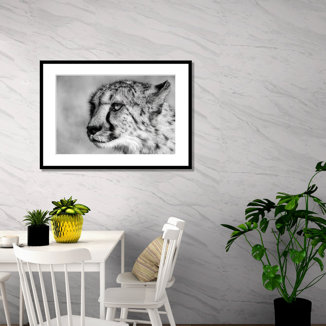 The Hunter's Gaze is a black and white, fine art, limited edition wildlife print of a cheetah in Namibia. This image's breathtaking composition and depth of field keeps the focus on the intricate facial features of this incredible species. As you spend more time looking at it, its unique character will become even more apparent. This exclusive piece is perfect for adding elegance and sophistication to any space in your home or office. Make a statement with this exquisite piece of art - own The Hunter’s Gaze and make yourself feel special.